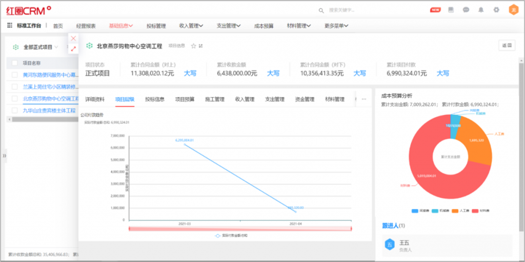 - 以客戶為中心:客戶的360度視圖,在某一個重點客戶的詳情頁面上,可以通過圖表或報表的方式,快速知曉該客戶的歷史訂單成交頻率,服務請求的每月次數,今年的回款情況分析、拜訪跟進情況等