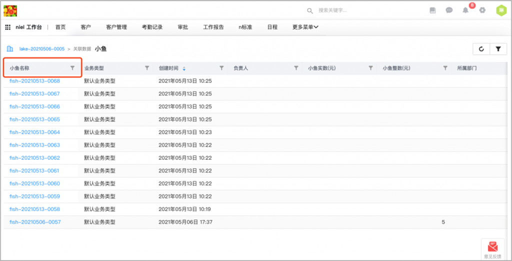 在數據資料的詳情頁面上,可以查看相關對象的報表。實現以當前數據為中心,360度視圖輕松查看分析全貌