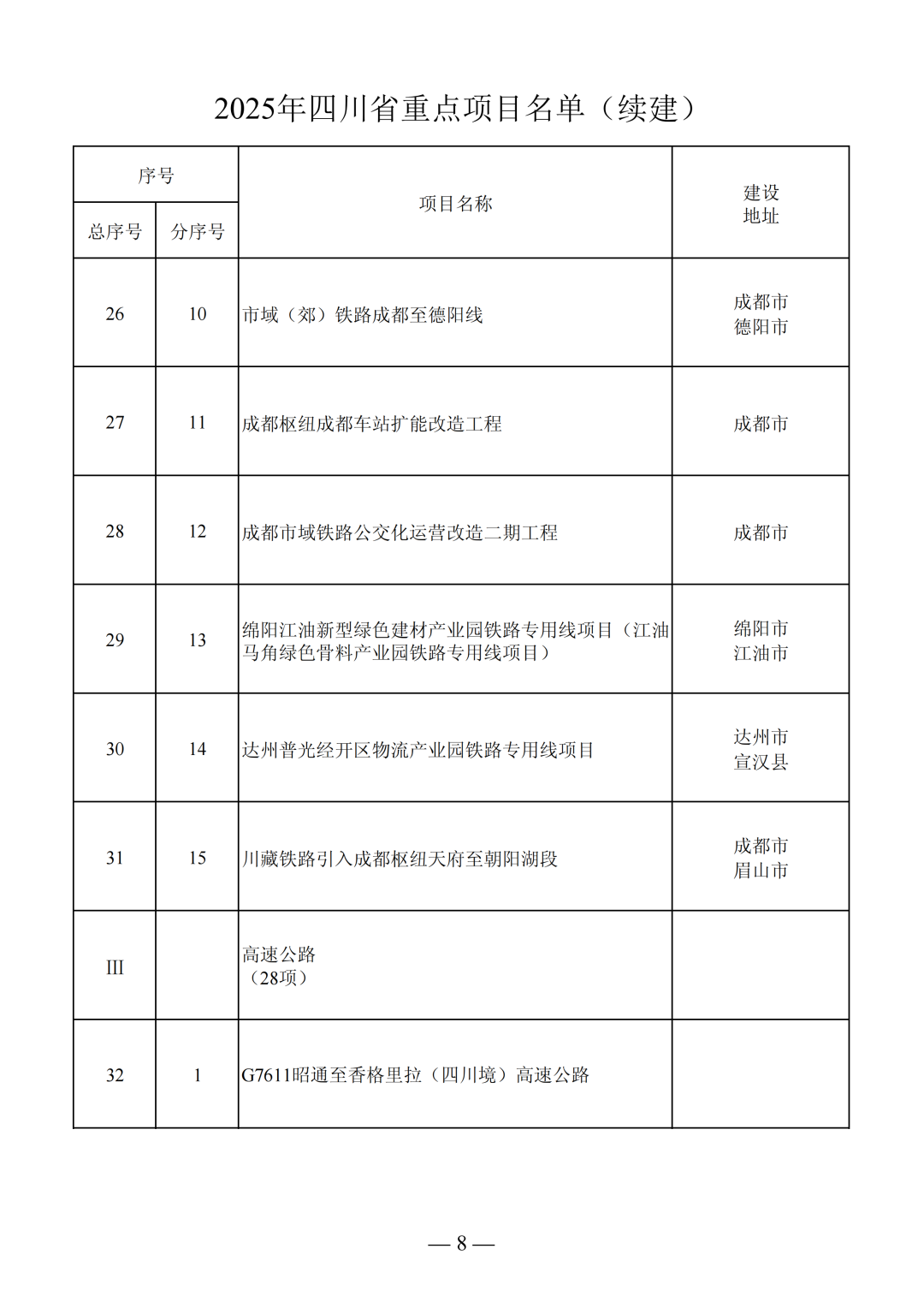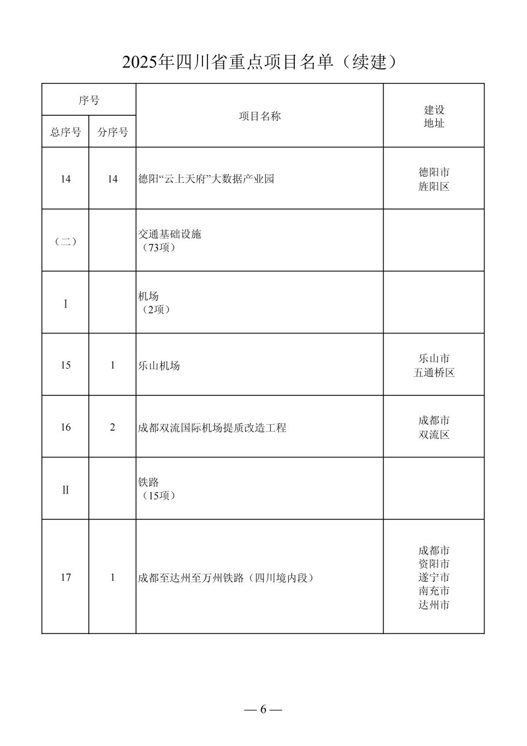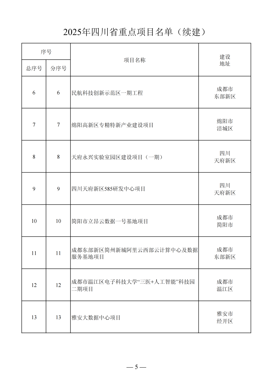 2025年四川省重點(diǎn)項(xiàng)目名單