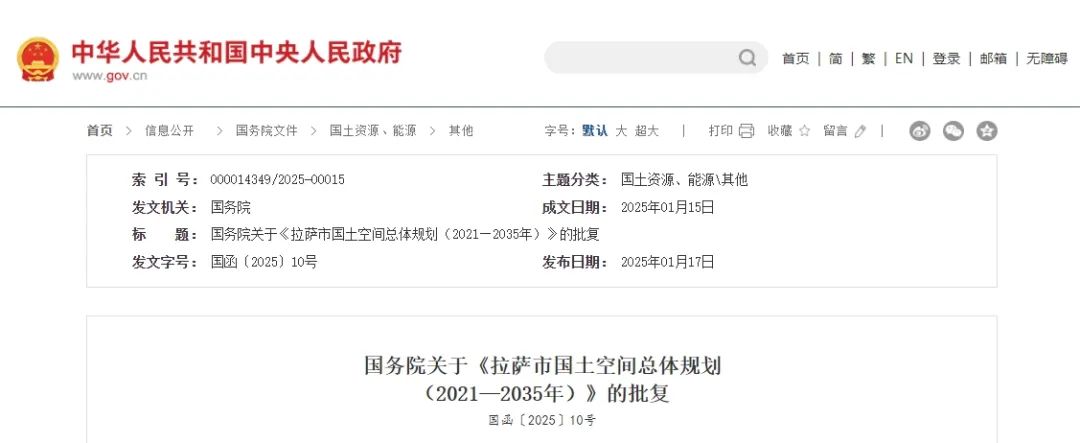 國務院關于《拉薩市國土空間總體規劃(2021—2035年)》的批復