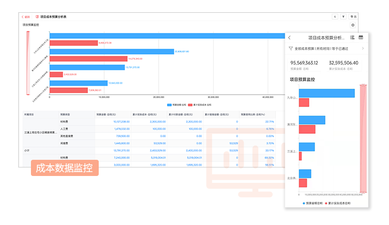 成本數據可鉆取查詢,超預算時,系統自動觸發提醒。